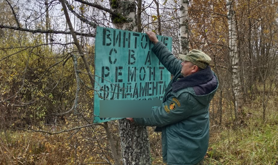 Старший участковый лесничий Сергиево-Посадского филиала ГАУ МО «Мособллес» Юрий Самарин во время патрулирования земель лесного фонда демонтировал два рекламных щита.