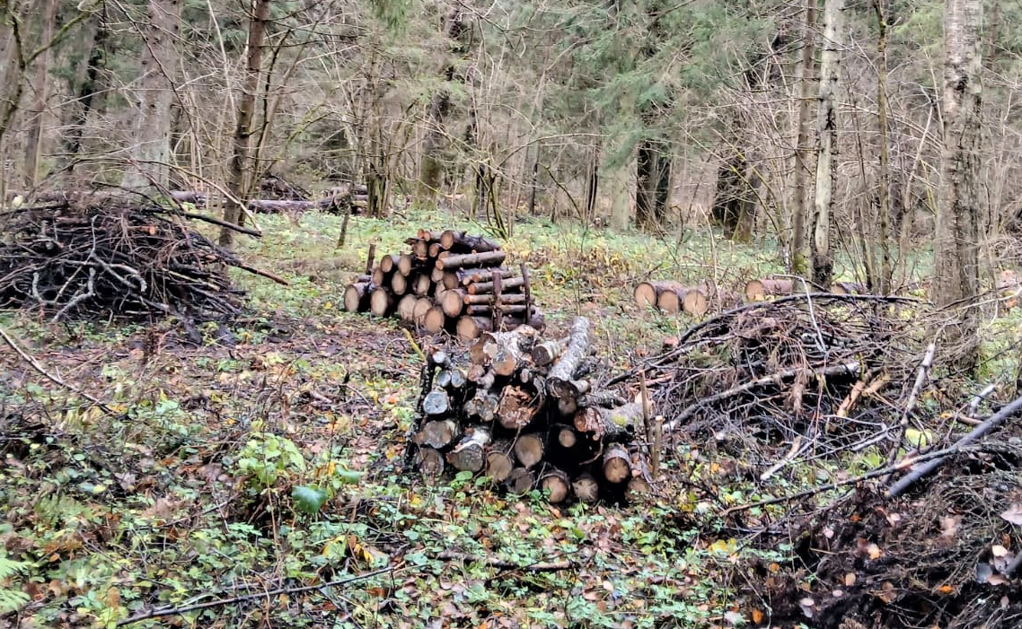 В ходе мероприятий упавшие и поврежденные от воздействия негативных погодных явлений части стволов деревьев и кустарников были распилены и аккуратно сложены в поленницы для дальнейшего перегнивания.