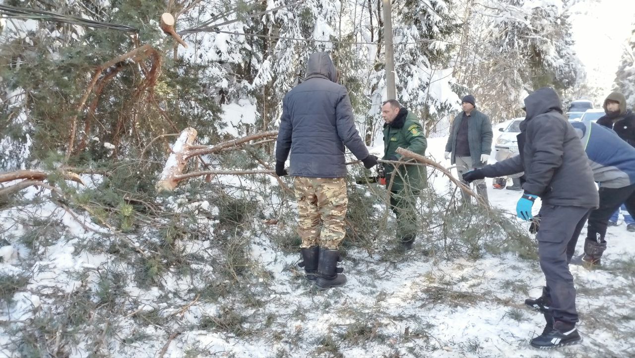 Сотрудники Московского учебно-опытного филиала ГАУ МО «Мособллес» принимают активное участие в разборе завалов из деревьев, упавших из-за большой снежной нагрузки.