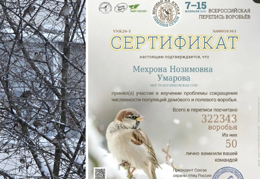 Воспитанники школьного лесничества «GreenArea» Подосинковской средней общеобразовательной школы не остались в стороне и приняли активное участие во Всероссийской акции по переписи воробьев.