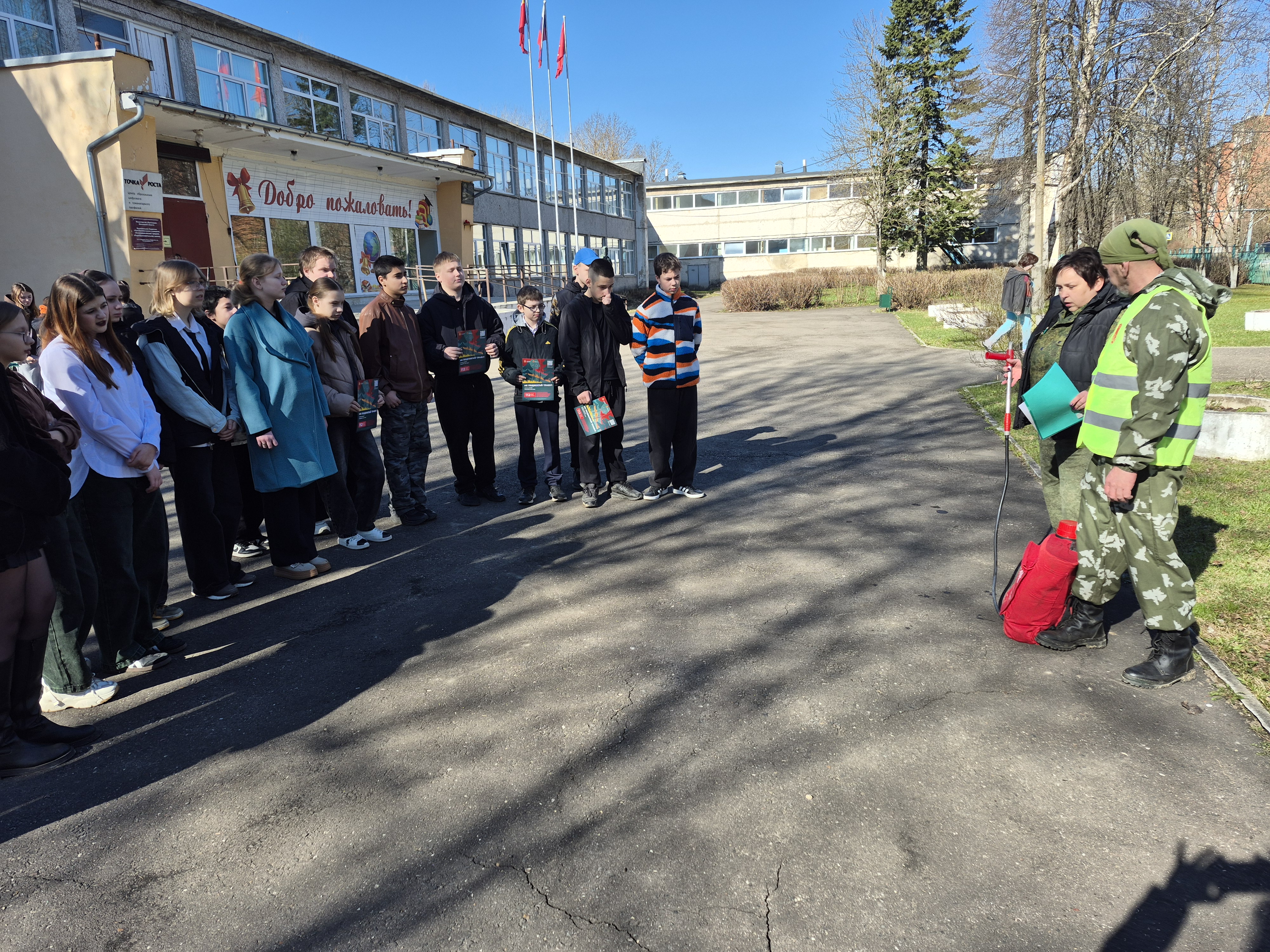 Помощник участкового лесничего Наро-Фоминского филиала ГАУ МО «Мособллес» Ольга Дюбкина и участковый государственный инспектор по охране леса Игорь Шеховцов провели занятие в школьном лесничестве «Лес» Дороховской средней общеобразовательной школы Рузского муниципального округа.