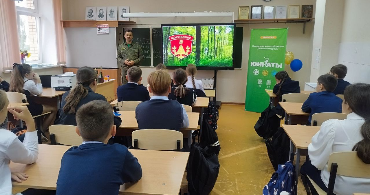 Старший участковый лесничий Серебряно-Прудского участкового лесничества Луховицкого филиала ГАУ МО «Мособллес» Валерий Галкин провел занятие с членами первичного отделения Общероссийского общественно-государственного движение детей и молодежи «Движение Первых», образованного на базе Серебряно-Прудской средней общеобразовательной школы имени маршала В.И. Чуйкова.