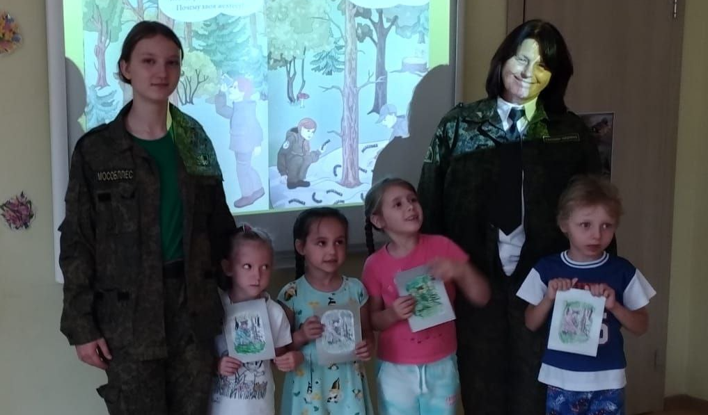 Юннаты рассказали малышам о работе лесничего – проведении посадок лесных культур и уходе за лесами, предупреждении лесных пожаров и борьбе с ними, напомнили об основных правилах пребывания в лесах.