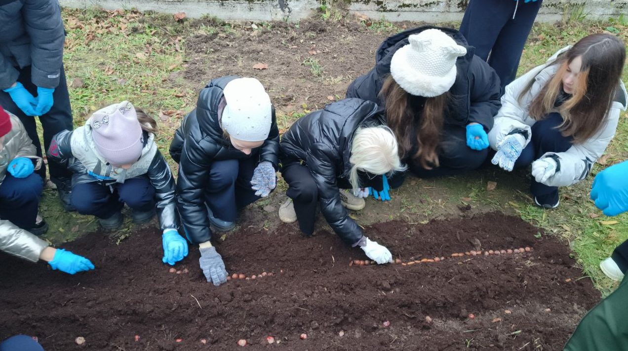 После подготовки гряды юннаты приступили к посадке семян – дуба черешчатого и болотного, а также каштана конского. Активное участие в проекте принял недавний выпускник школьного лесничества Артём Гайвас, продемонстрировавший младшим товарищам важность заботы о природе.