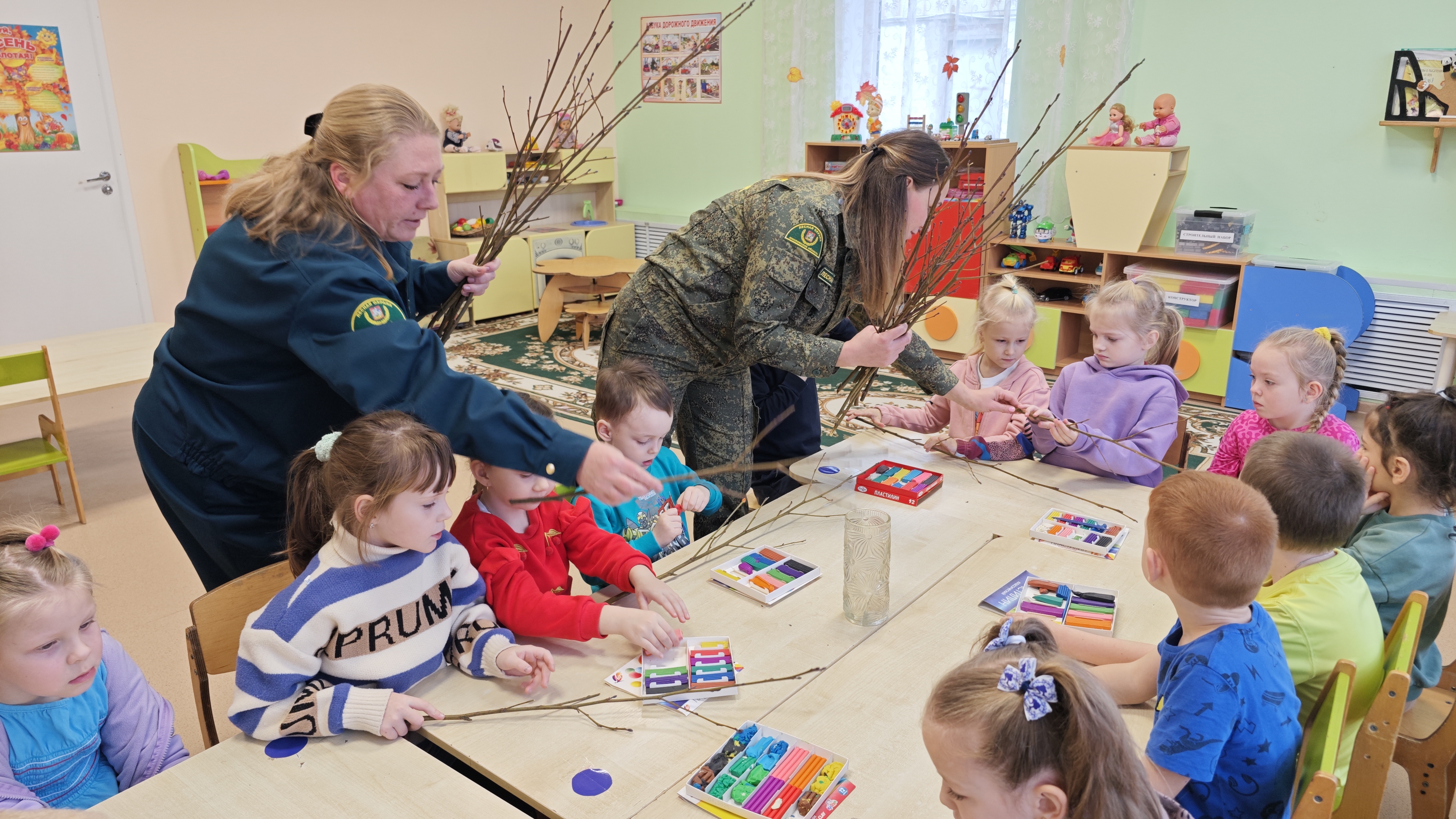 А в детском саду д.Савинская Губинской средней общеобразовательной школы прошло интересное занятие, где малыши познакомились с профессией лесничего. Сотрудники Яковлевского и Белавинского участковых лесничеств рассказали детям об особенностях своей работы и провели творческое занятие по украшению веточек ольхи. Занятие было организовано в форме игры, что сделало его особенно увлекательным для самых маленьких участников.