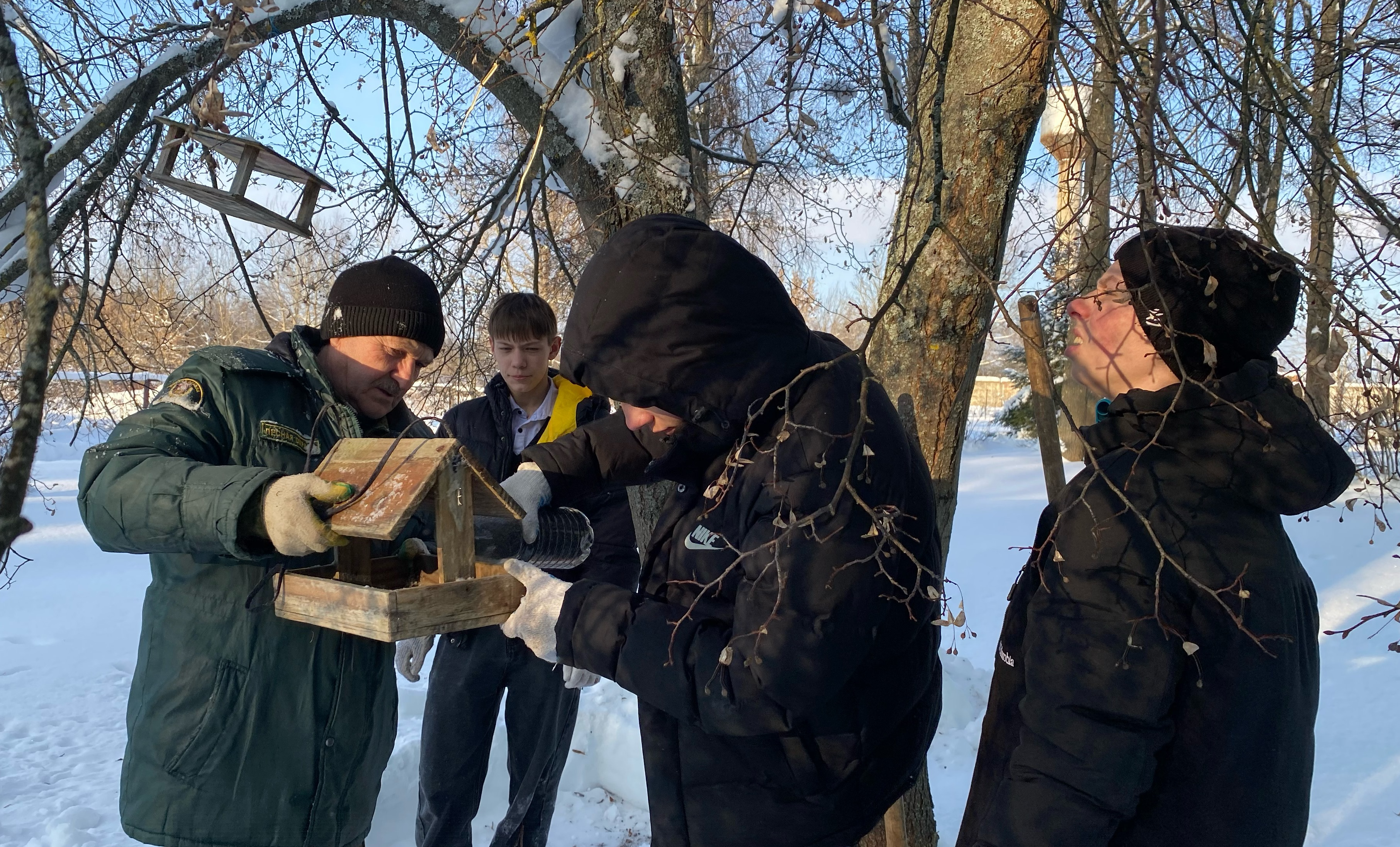 Ребята с интересом выслушали рассказ о том, какие птицы остаются зимовать в Подмосковье, чем их можно подкармливать, почему это следует делать регулярно. От теории перешли к практике: набрав угощений, дети вместе с лесничим отправились наполнять «птичьи столовые», развешанные на пришкольной территории.