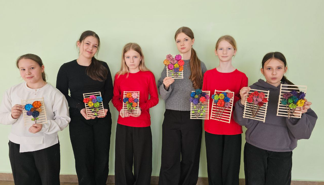 Поделки юннатов становятся настоящим украшением праздников и служат прекрасным примером заботы о природе. Накануне Международного женского дня 8 Марта ребята под руководством учителя технологии Ирины Норкиной изготовили букеты из натуральных материалов – веток, еловых и сосновых шишек.
