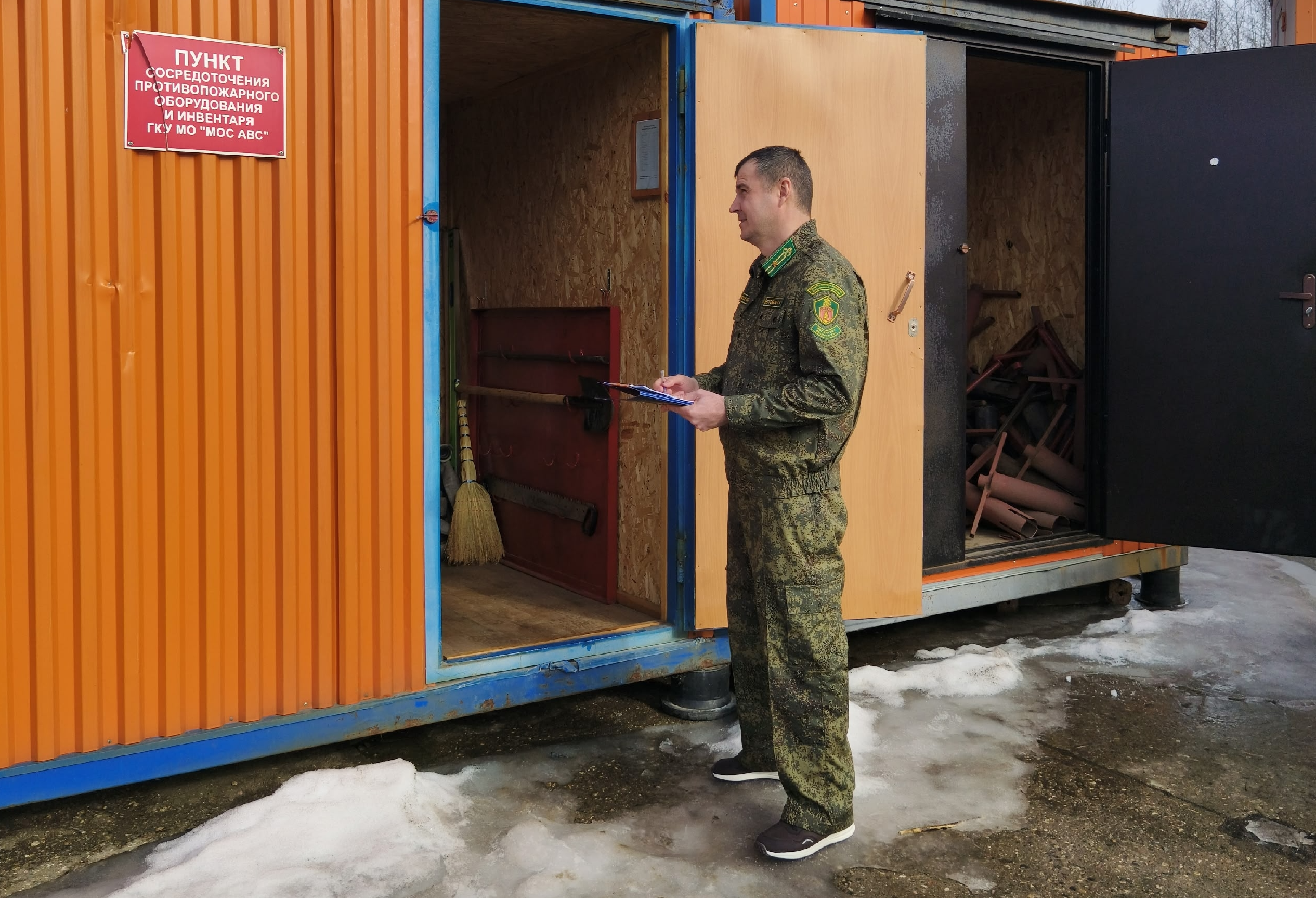 Специалисты осмотрели пункт сосредоточения противопожарного инвентаря Московской областной специализированной аварийно-восстановительной службы. В результате установлено, что техника, оборудование и снаряжение находятся в полной готовности.