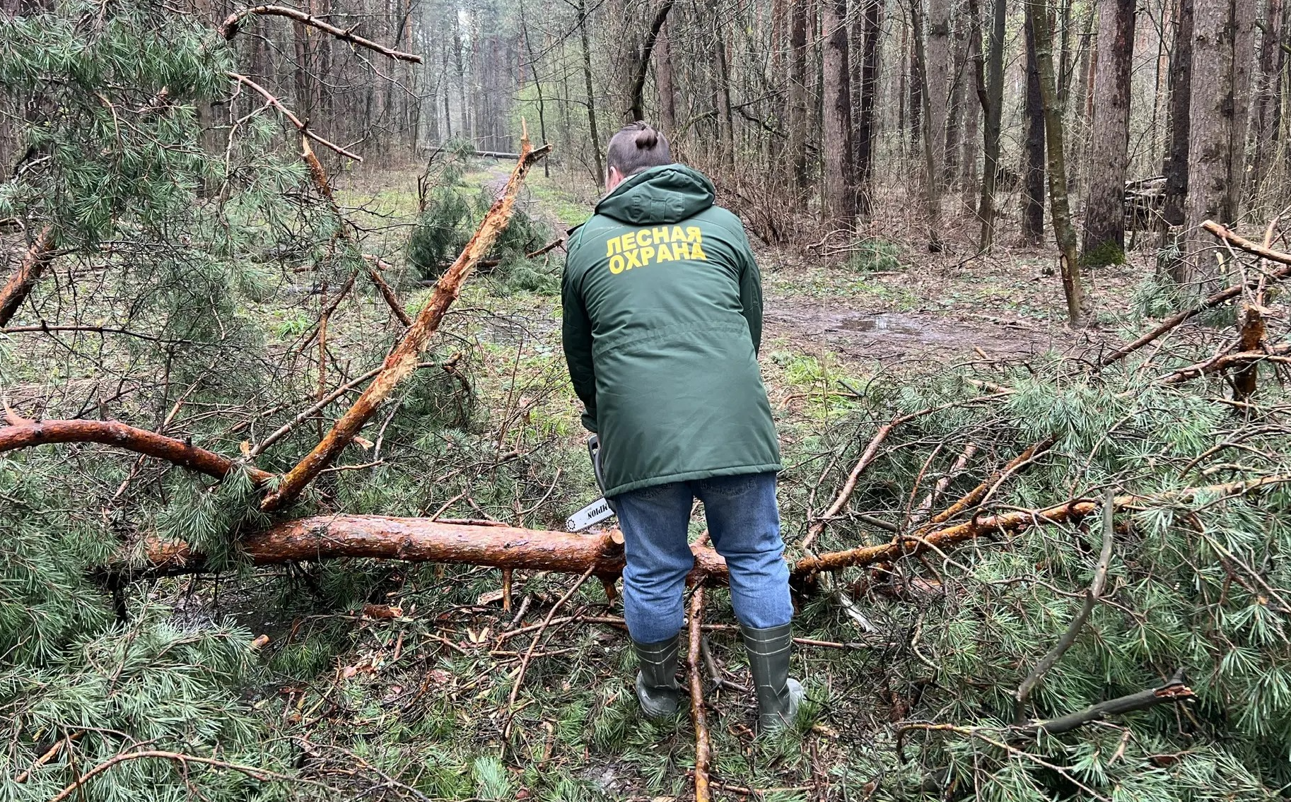 Лесничие не остались в стороне от проблемы – упавшие деревья распилили и убрали с дорожки.