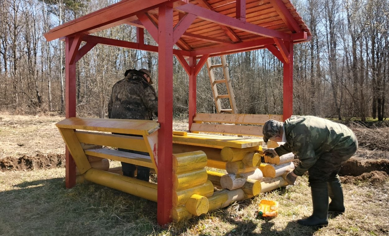 Сотрудники подкрашивают и обновляют беседки, опахивают территорию вокруг, чтобы предотвратить распространение огня в лес.